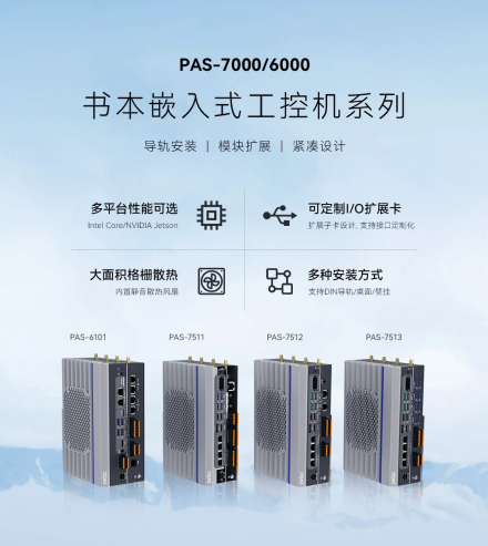 智微工业结合创新应用,推出全新的PAS-7000/6000书本嵌入式工控机系列产品。整机大小与书本相当,支持立式导轨安装,能够适应空间有限、部署要求高的工业环境中。